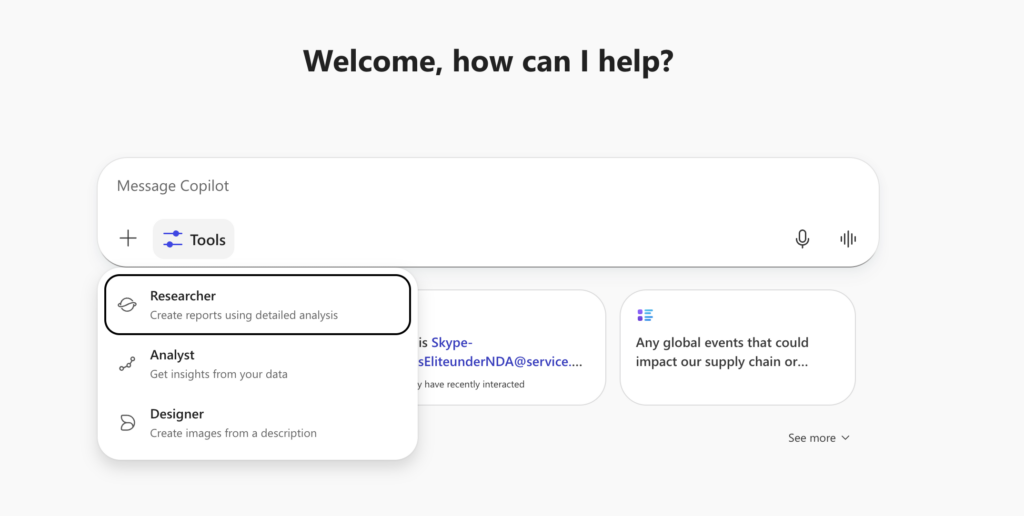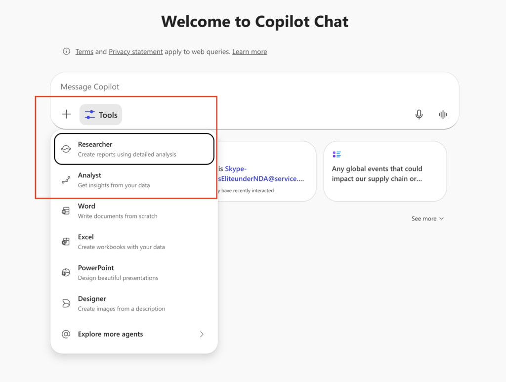 - TLDR: Researcher and Analyst will remain accessible in M365 Copilot Chat via tools, even when Copilot agents are disabled in Agents Settings for some or all users.